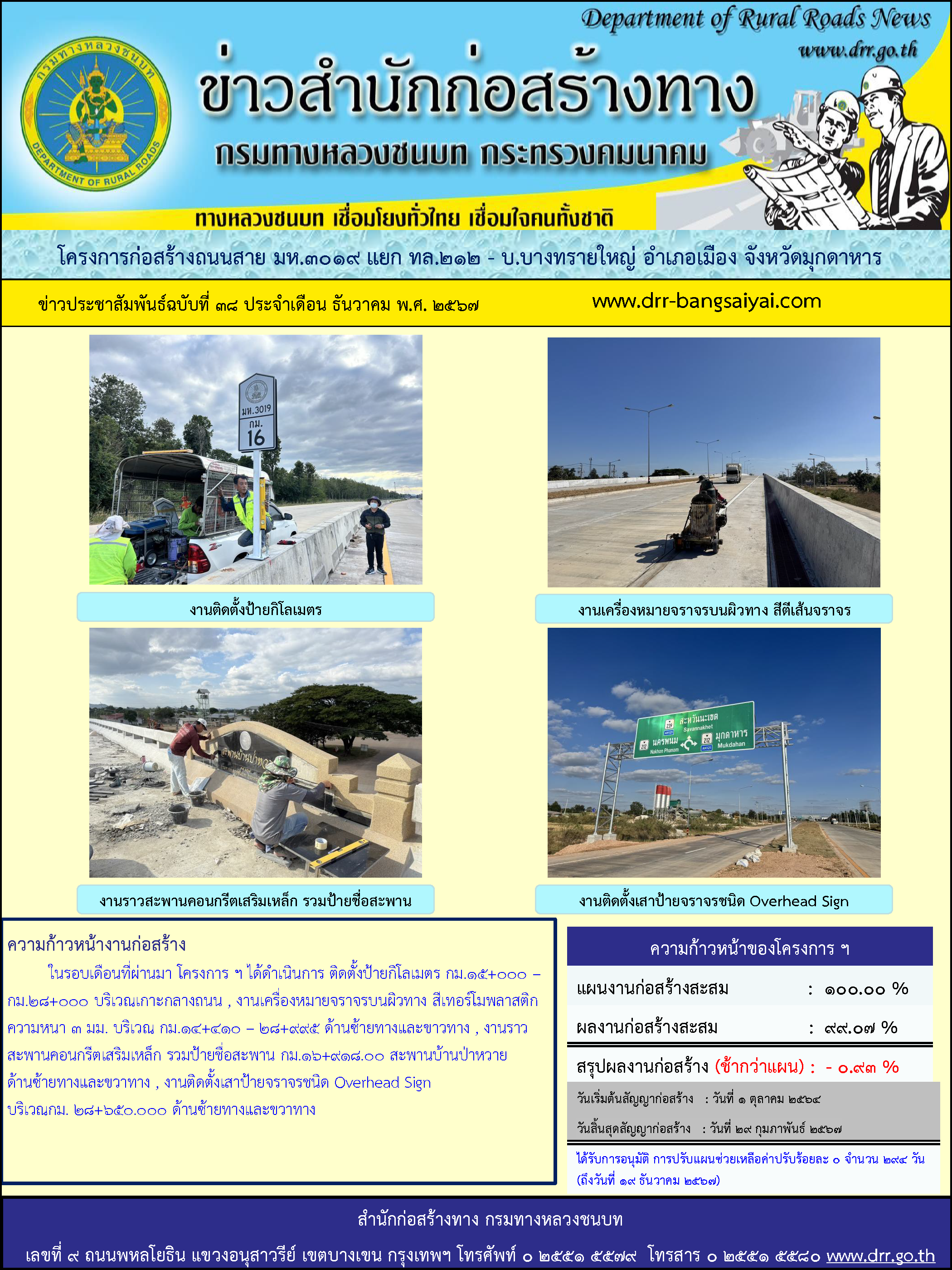 โครงการก่อสร้างถนน สาย มห.3019 แยก ทล. 212 – บ.บางทรายใหญ่ อำเภอเมือง จังหวัดมุกดาหาร